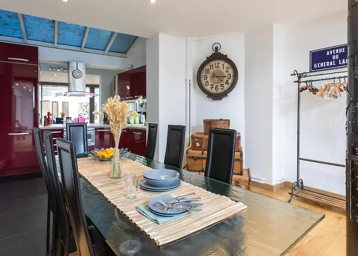 旅客可以使用公寓的微波炉,电热水壶和烤箱. 这间130平方米的公寓距离巴黎机场有20公里.